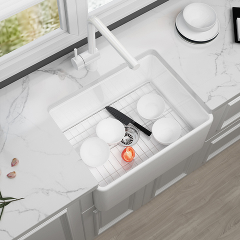 Pia de cozinha de cerâmica para banheiro, estilo europeu, 24 "branco, de alta qualidade, tigela única, de argila, para uso agrícola, sob montagem